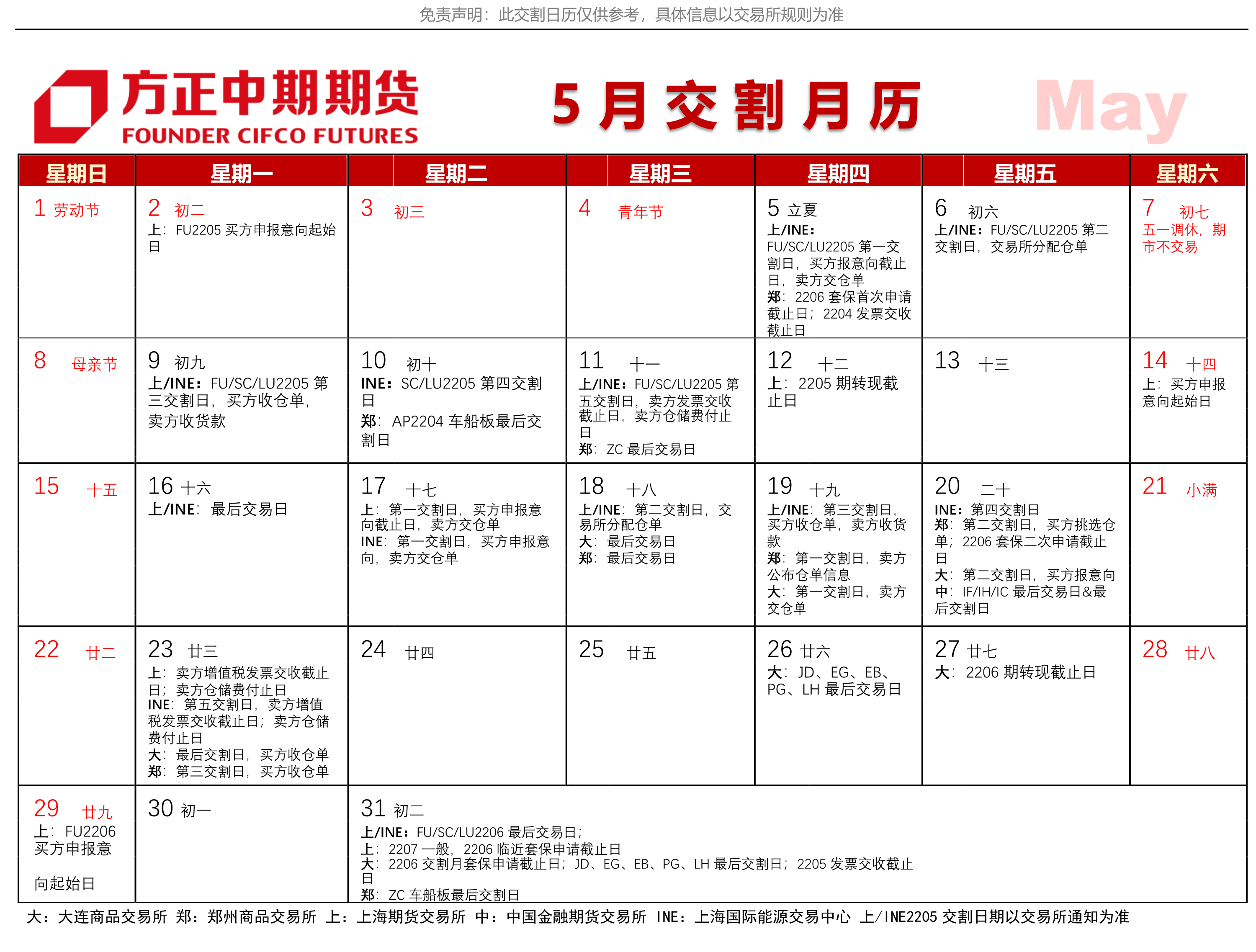 5月交割月歷